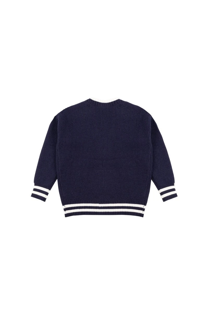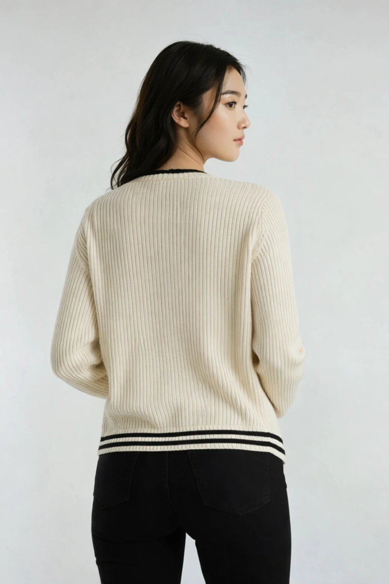 [sbrand] Contrast-Trim Collared Knit Sweater