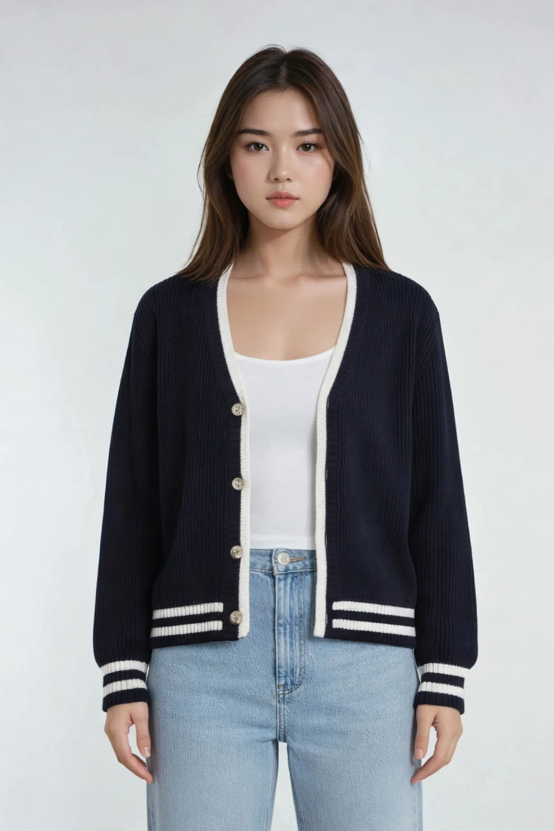 The [sbrand] Oversized Contrast-Trim Ribbed Cardigan is the perfect blend of comfort and style. This ribbed knit cardigan sweater features a classic V-neckline and an oversized fit, creating a cozy, relaxed look. The contrast trim detailing along the neckline, placket, cuffs, and hem adds a modern touch, making it a versatile piece for layering. Button-front closures with decorative buttons and long sleeves with ribbed cuffs complete the chic design, making this cardigan an essential addition to any wardrobe.