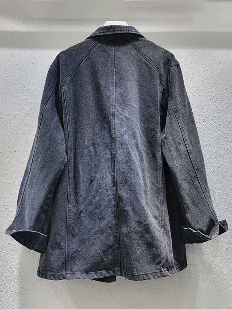Women’s Denim Coat Embroidered Flares Broken Holes Rivets Single Breasted Short Jackets